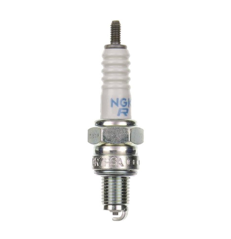 Candela moto CR7HSA. NGK è fornitore di candele di primo equipaggiamento per una amplissima gamma di motori a combustione interna. I suoi prodotti vengono impiegati sui quasi tutte le automobili e motociclette che circolano quotidianamente sulle strade; l'elevatissima qualità delle candele NGK viene apprezzata anche dai più importanti costruttori di piccoli motori per attrezzature da giardinaggio e motori per imbarcazioni Il marchio NGK è inoltre presente nel prestigioso mondo delle competizioni motoristiche di più alto livello. Le candele di accensione NGK sono tanto evolute quanto affidabili. Sono in grado di massimizzare le performance del motore e contribuiscono a ridurre l'inquinamento ambientale grazie all'ottimizzazione del processo di combustione.